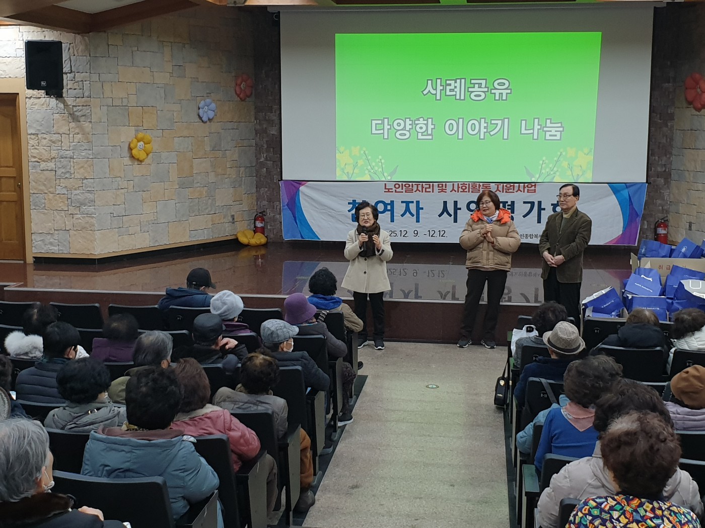 12월 9일부터 12일까지 4일간 노인일자리 참여자 347명이 참여한 가운데 ‘2025년 노인일자리 및 사회활동지원사업 사업평가회’를 진행하였습니다.